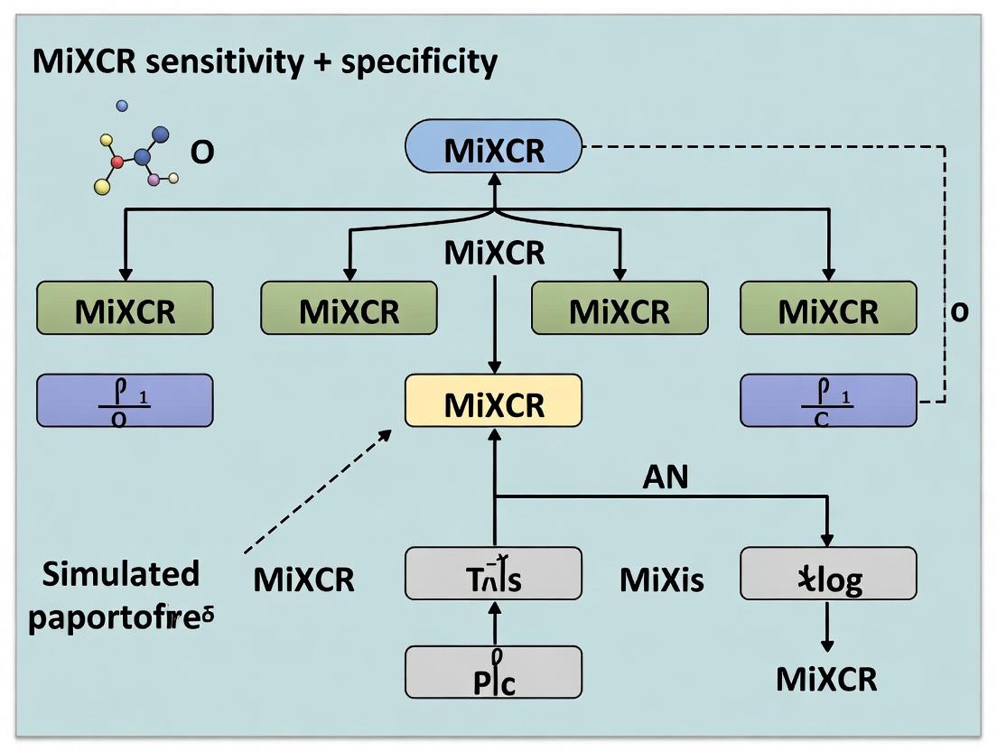 Utilizing simulated immune repertoire data provides an indispensable, controlled framework for quantifying the sensitivity and specificity of MiXCR. This systematic benchmarking approach reveals that while MiXCR is a robust and highly sensitive tool for repertoire reconstruction, its performance is contingent on appropriate parameter tuning and an understanding of inherent trade-offs, especially in noisy or highly diverse samples. Comparative analyses underscore its position as a leading tool but highlight that the optimal pipeline may be application-specific. Future directions include the development of more physiologically realistic simulators incorporating somatic hypermutation and complex repertoires from immunized or diseased states. Ultimately, rigorous performance assessment, as outlined here, is not merely a technical exercise but a fundamental prerequisite for generating trustworthy immunological insights that can inform biomarker discovery, vaccine development, and cancer immunotherapy.